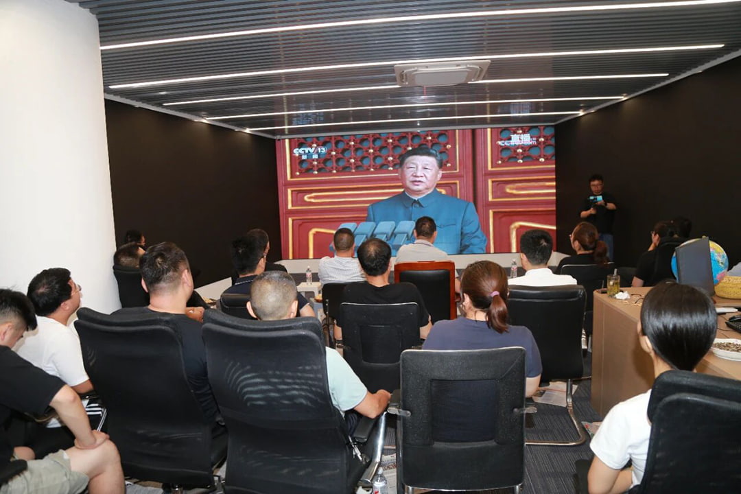 为隆重庆祝中国人民抗日战争暨世界反法西斯战争胜利80周年,深切缅怀革命先烈的丰功伟绩,进一步激发全体员工的爱国热情和民族自豪感,凝聚团结奋斗的磅礴力量,公司党支部及总经办于2025年9月3日上午9时,组织全体员工观看了盛大的阅兵仪式现场直播。